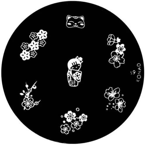 Nyomdázós mintalemez körömre, 7 különféle motívummal. A minták között megtalálható a virág, macskafej és kislány. Használata előtt távolítsa el róla a védőfóliát és a kiválasztott mintát nyomra rá a körömre.