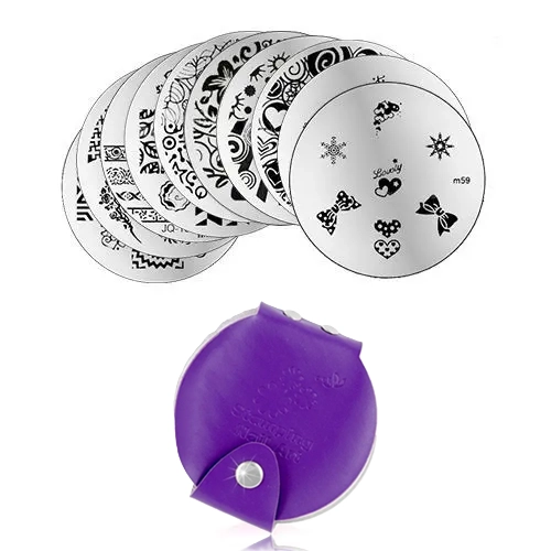 Dekoratív készlet rózsaszín pecsételő mintakorog tartóból és 10db mintakorongból. Stílusos és egyben praktikus pecsételő mintakorong tartó, mely szintetikus bőrből készült. 12 darab pecsételő korong tárolására. A korongokat áttetsző matt fólia tartja és védi. A korongok könnyedék kivehetőek. Segít a gyorsabb és könnyebb választásban.