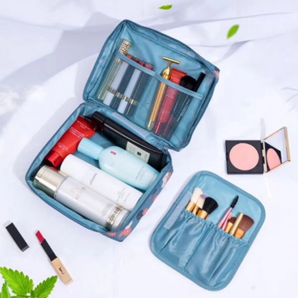 Tágas utazótáska kozmetikumoknak és piperecikkeknek. Ez az utazó kozmetikai táska praktikus és kompakt. Több rekesszel rendelkezik a kozmetikumok praktikus és áttekinthető tárolására. Vízálló anyagból készült, amely könnyen tisztítható. Oldalt fogantyúval rendelkezik a könnyű hordozás érdekében.