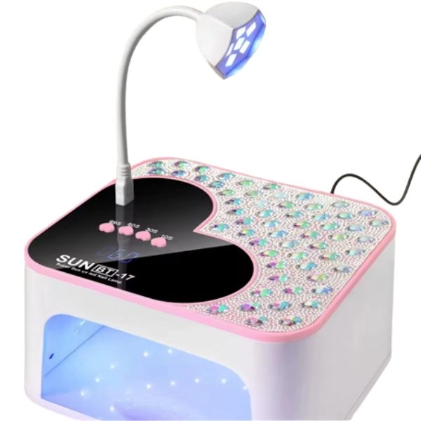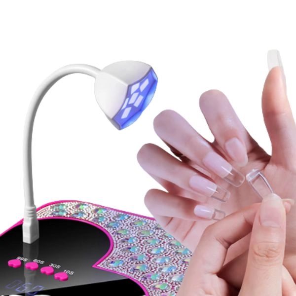 UV/LED körömlámpa, strasszokkal borítva, szív alakú LCD kijelzővel.