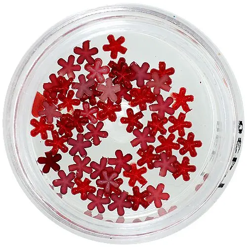 Gyöngyházas visszfénnyel díszített, rubinpiros virágok, melyek ideálisak természetes, zselés és porcelán körmök díszítésére, egyaránt. Érdekes és eredeti stílust biztosítanak a körmöknek. Az egyszerűbb manipuláció érdekében ajánlatos díszítőtollat vagy narancsfa pálcikát használni.