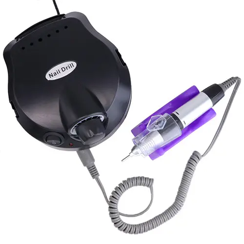 Körömcsiszoló fekete színben, pedállal és körömcsiszoló feltétekkel.